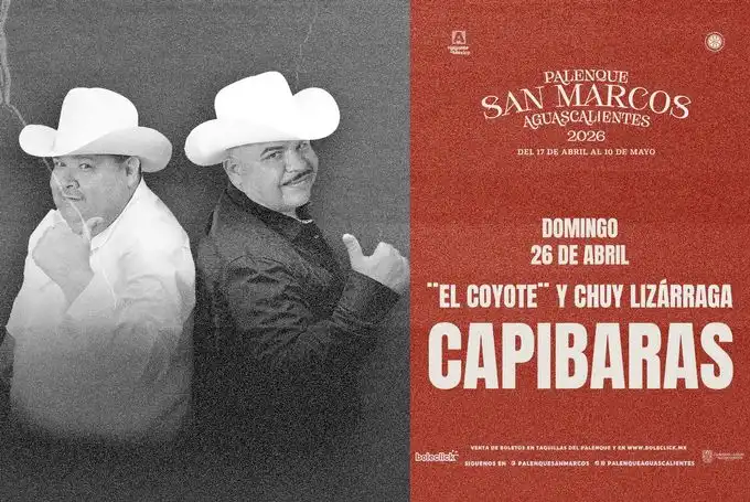 Por eso, reúne a tus amigos y disfruta de El Coyote, Chuy Lizárraga y Capibaras en el Palenque San Marcos 2026 este 26 de abril.