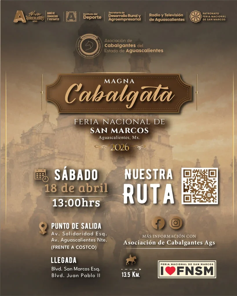 La Magna Cabalgata en la Feria de San Marcos 2026 no es solo un recorrido, es una expresión cultural que refleja las raíces y tradiciones del estado. Este evento reúne a la comunidad ecuestre, asociaciones de cabalgantes y público en general en una celebración que honra el legado rural y ganadero de la región.