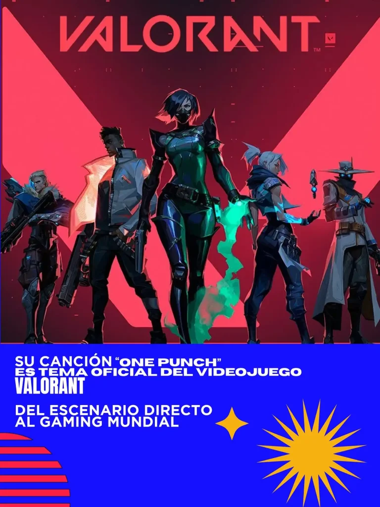 Además, su canción “One Punch” fue elegida como tema oficial del videojuego Valorant, llevándola directamente al escenario del gaming mundial y reforzando su influencia dentro de la cultura digital y los esports.