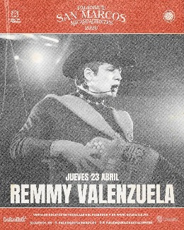 El concierto de Remmy Valenzuela en el Palenque San Marcos 2026 se llevará a cabo hoy, 23 de abril de 2026, con acceso programado a las 23:55 horas.